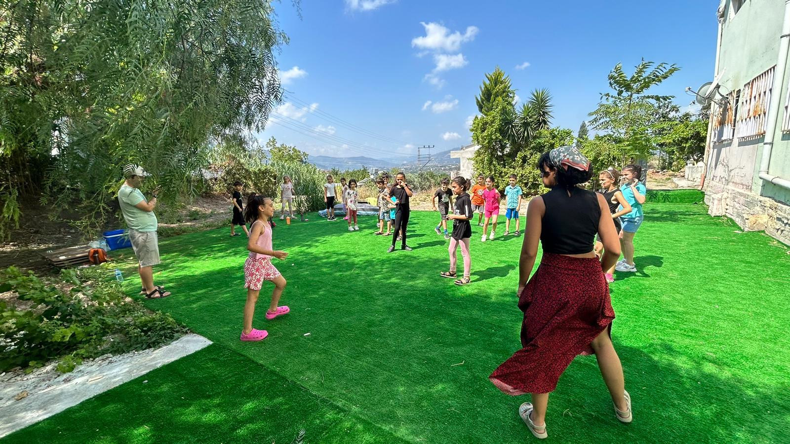 Çocukların ve ziyaretçilerin etkinlik alanında zaman geçirebileceği gölgelik bir alan