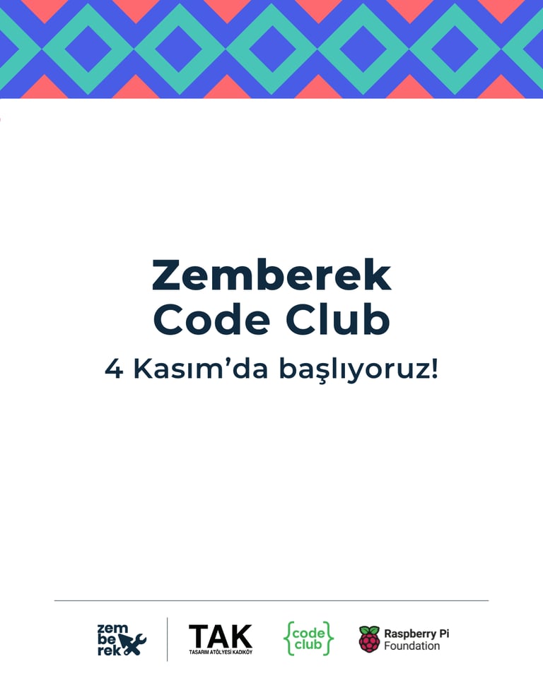 Zemberek CodeClub, 10–16 yaş arası çocuklar için her hafta düzenlenen yaratıcı teknoloji buluşmalarıdır. Katılım ücretsizdir, kontenjan sınırlıdır. Başvuru için bağlantıya tıklayın!
